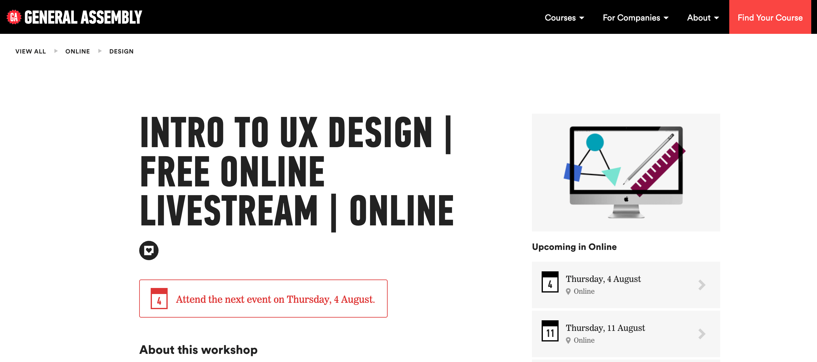 The UX Design Institute offers a free UX design course for beginners to UX design that consists of content taken from its university credit-rated programme in UX design. It’s a great survey of topics in UX design as well as a great introduction to everything the UX Design Institute’s programme has to offer.